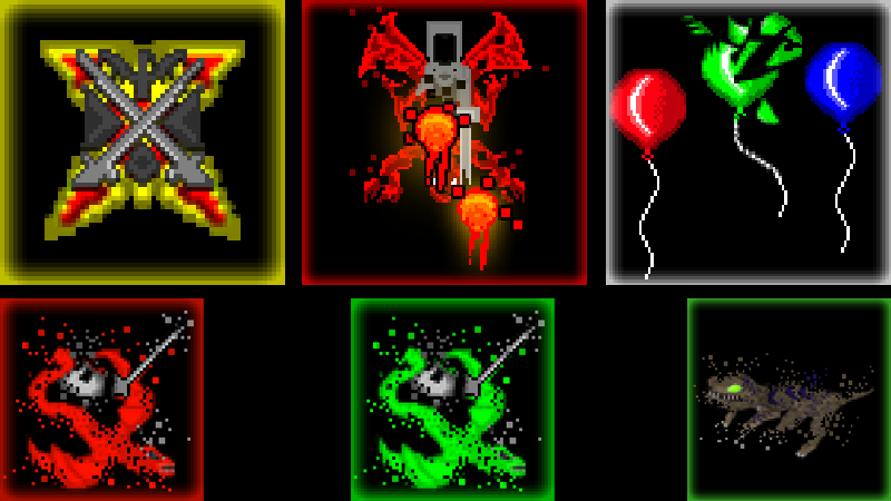 - 7 weapons to choose from in the shop (Default Lance, Super Lance, Golden Lance, Magic Wand, Dual Wield, Bow and Arrow, Shield, Dragons Breath)