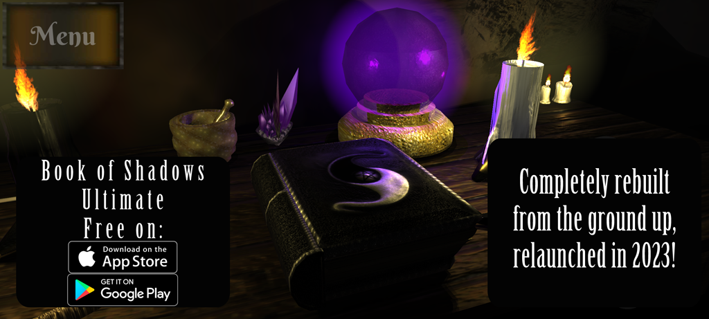 • Fully interactive 3D Book of Shadows • Each page of the book can have custom images • Add Pagan Emojis/Stickers to the book pages (also default phone emojis) • Many maps called “realms” where you can hang out in first person and unlock new items • Most realms are solstice related • Interactive objects, some have a deep purpose, others are for entertainment • You can load on app start into to your favorite “Realm” • Pagan alter in the cave, that can be customized • Achievements unlock new pagan items to use, like new book of shadows themes, stickers etc. • Multiple fonts to choose from • Book of Herbs – Database of herbs to refer too • Book of Solstices – Database of the solstices in an interactive Solstice Wheel of the Year • Book of Stickers – Unlock stickers for a BoS scrapbook and make your own Pagan wallpapers! • Customize the portraits on the walls in the realms for more personalization