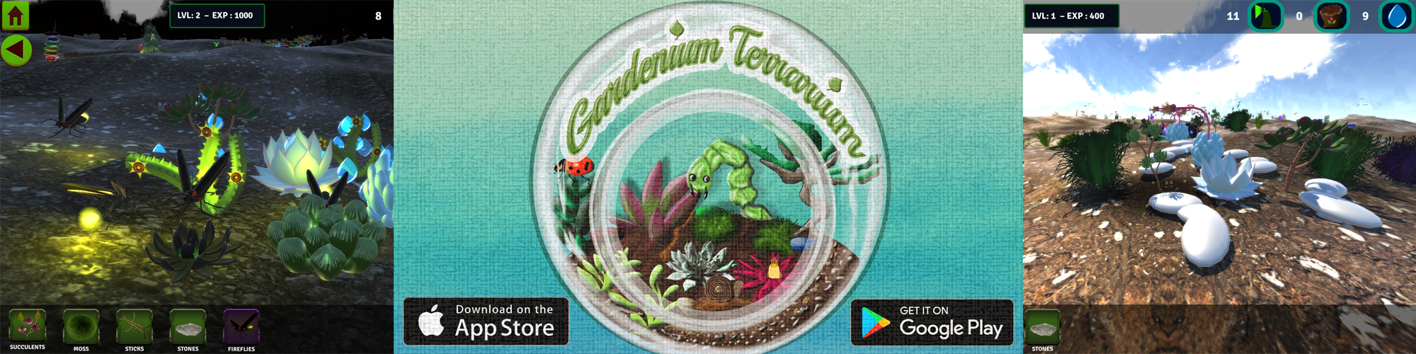 Grow beautiful 3D succulents and plants in your own magical terrarium. Watch them grow in almost real-time, each plant animates over time as it grows. Water them, fertilize them, and protect them from bug invasions! Things like fireflies and amazing props allow for very exciting and detailed customization. This game is in Early Access, but development is moving along quite nicely. With the players help we can shape the game into the best Terrarium game on mobile! The game features custom artwork, sound effects and music.